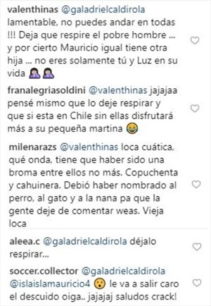 «Faltamos Luz y yo a tu lado», dijo ella, respuesta que le generó una ola de críticas por parte de los seguidores del ftbolista, donde le pedían que lo «dejara respirar», ya que no puede publicar siempre fotos junto a ella y su hija.
