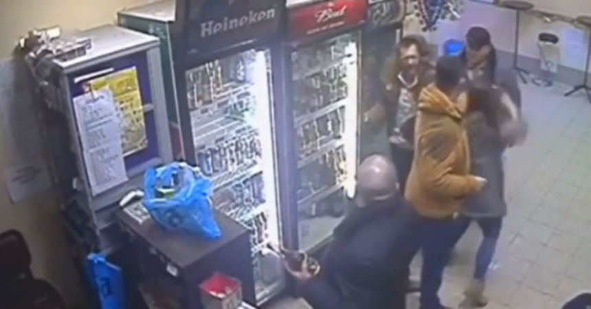 En las imágenes, grabadas por las cámaras de seguridad del establecimiento, se ve cómo el cliente agarra por el abrigo a otro hombre que se encuentra en evidente estado de ebriedad y lo golpea la cabeza contra una de las máquinas.