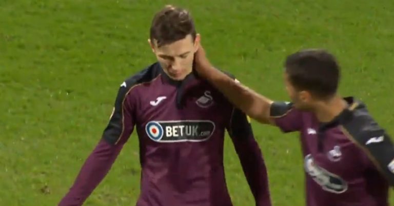 Aunque el marcador muestra una contundente victoria, Swansea había tenido la oportunidad para dar vuelta el partido. A los 30 minutos, cuando el Swansea iba perdiendo 1-0, una falta en el área hizo que el árbitro cobrara penal. El joven centrocampista Bersant Celina fue el responsable de ejecutar la pena máxima.