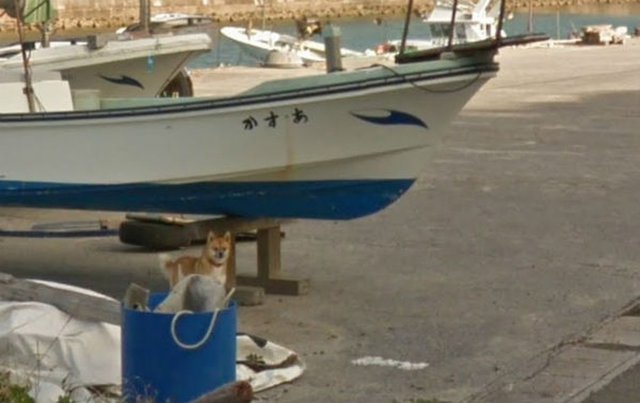 Para quien quiera ver al adorable perro solo tiene que colocar en el buscador de Google Maps las coordenadas 30.383595 130.862597. Luego hacer zoom hasta llegar al nivel de la calle. Ahí verán al perrito junto a un bote mirando directamente a la cámara.