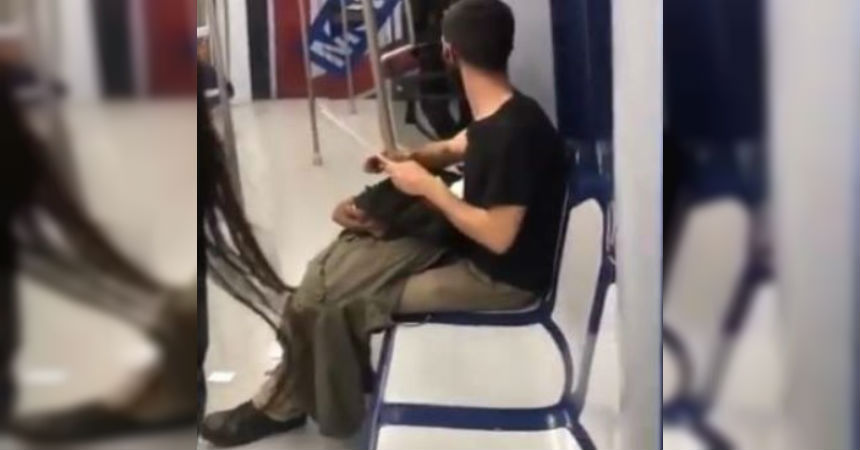 Un video que muestra a un joven afilando un cuchillo de grandes dimensiones mientras viaja sentado en el metro de Madrid, España, se hizo viral en las redes sociales.