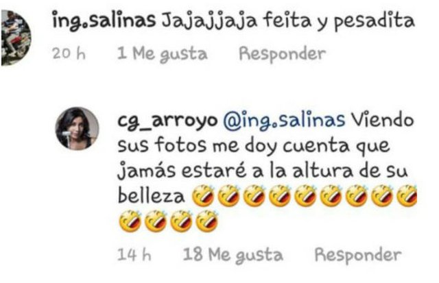 «Feita y pesadita», «es muy bello para la señora, ella es fea», fueron dos de los posteos que Arroyo recibió y a los que respondió con ironía.