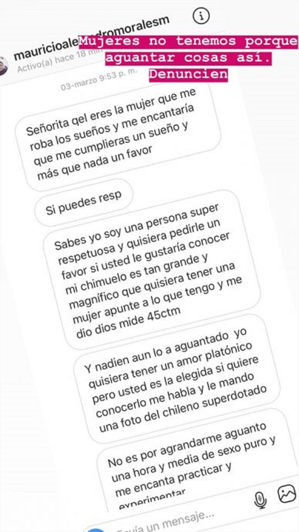 Resulta que la joven usó su cuenta de Instagram para funar a un sujeto que lleva algún tiempo acosándola a través de la red social, y que le envía mensajes obscenos.