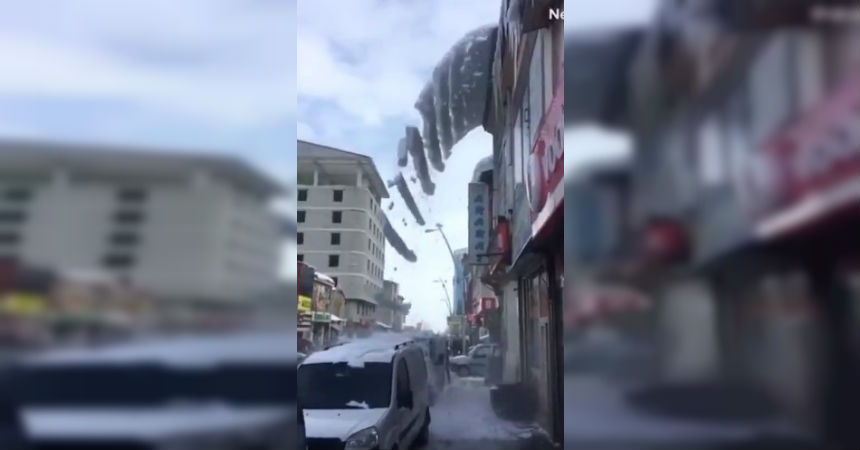 WATCH: Snow fell off this roof in #Turkey in slabs on Tuesday. A local resident said it felt like an earthquake and a car was slightly damaged. It is not clear what caused the snow to fall in that pattern. pic.twitter.com/hgvDMdP8ZH