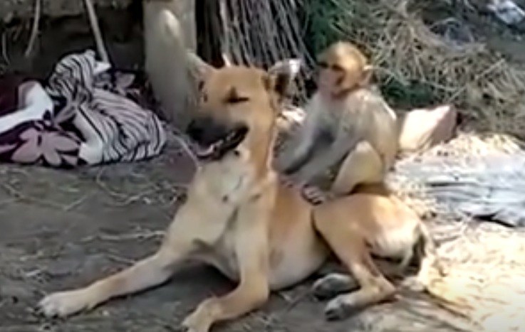 Video: Perra adopta a un mono huérfano, y lo amamanta