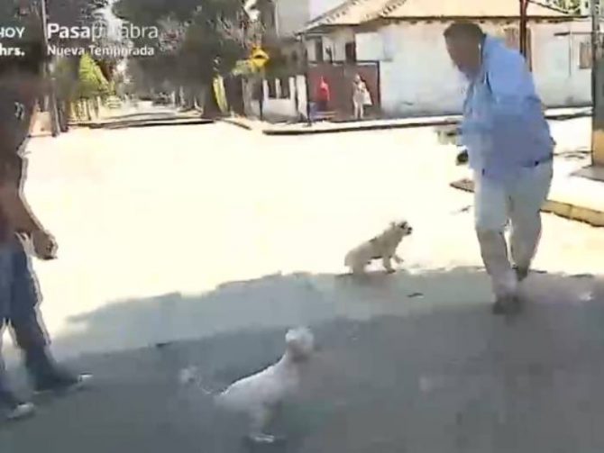 Resulta que el comunicador quería hacer participar a los vecinos del lugar pero aparecieron unos perritos que al parecer no querían nada con él.
