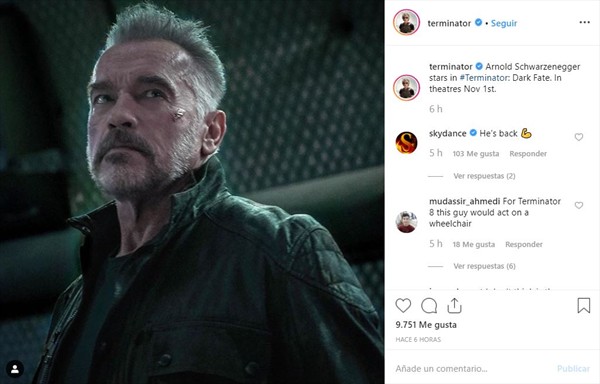 El artista quiso compartir una imagen de su personaje en Terminator: Dark Fate, la nueva cinta de la franquicia dirigida por Tim Miller (Deadpool), y escrita y producida por James Cameron.