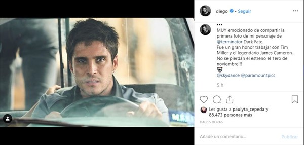 «Fue un gran honor trabajar con Tim Miller y el legendario James Cameron. ¡No se pierdan el estreno el 1ero de noviembre!», escribió el guapetón junto a la imagen en Instagram