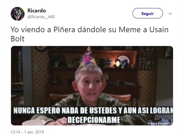 El atleta tomó la situación con todo el humor del mundo y agradeció el gesto de Piñera, pero los usuarios en redes sociales no tardaron en mostrar su ingenio con otros memes.