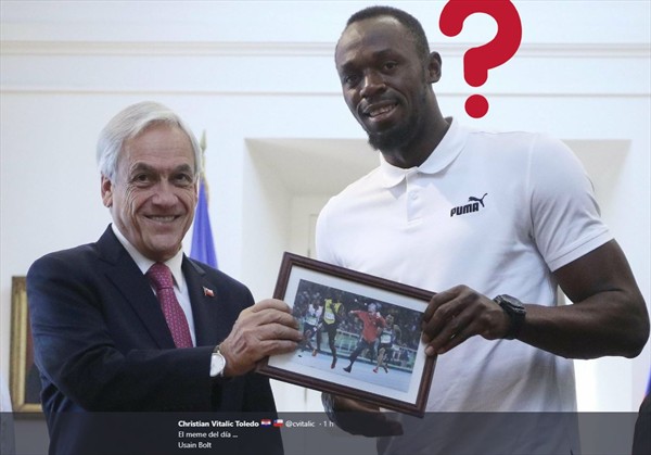 Este lunes Usain Bolt llegó al Palacio de La Moneda y el Presidente aprovechó de mostrarle un meme, pero este generó una ola de más troleos en redes.