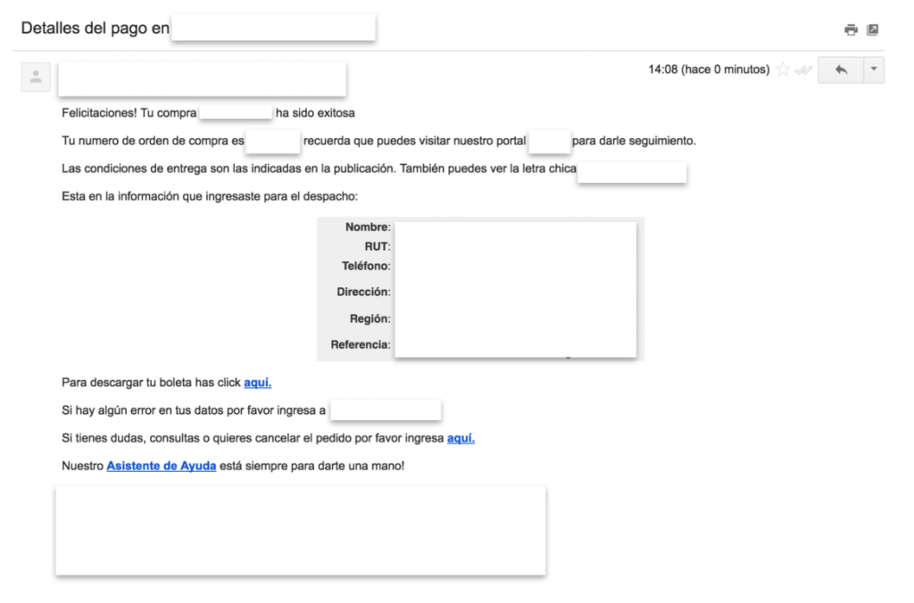 Todo parecía ir bien en esta nueva versión del CyberDay 2019, hasta que se descubrió un nuevo intento de estafa. La empresa de seguridad Arkavia Networks, informó mediante un comunicado, que existe un fraude, en donde el usuario recibe un correo electrónico confirmando o agradeciendo una supuesta compra realizada por él. Además, en dicho mail se explicita que la compra será despachada, pero también le ofrece un link donde se puede cancelar.