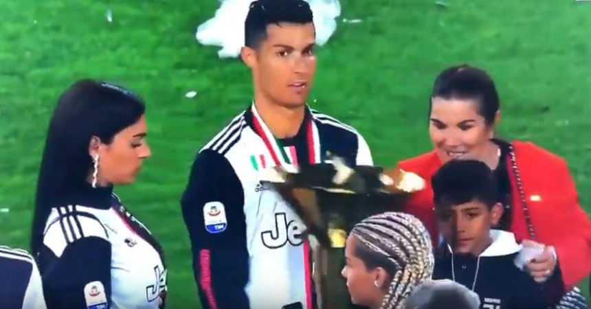 Era el primer título de Cristiano Ronaldo tras llegar como flamante estrella de «La Vecchia Signora». Sin embargo, al parecer su emoción le jugó una mala pasada, ya que mientras estaba con el trofeo en sus manos, golpeó a su hijo en el rostro.