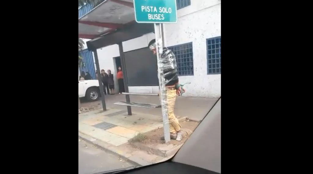 El pasado martes en la comuna de Quinta Normal, un grupo de vecinos decidieron amarrar en una señalética a un hombre, quienes según sus testimonios ya había realizado robos con anterioridad.