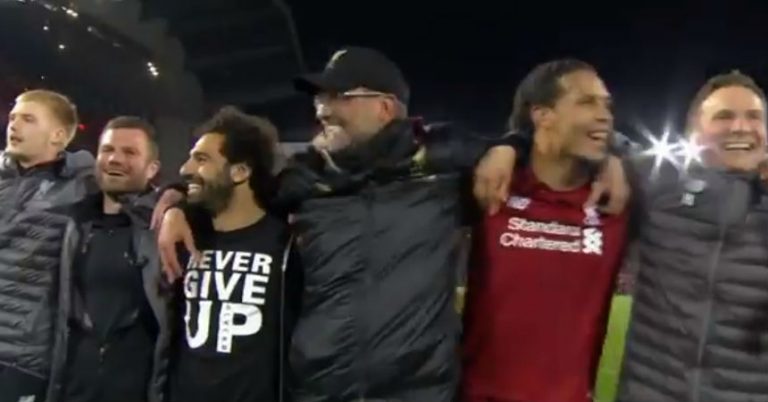 El emotivo canto entre hinchas y jugadores del Liverpool tras el épico triunfo ante el Barcelona