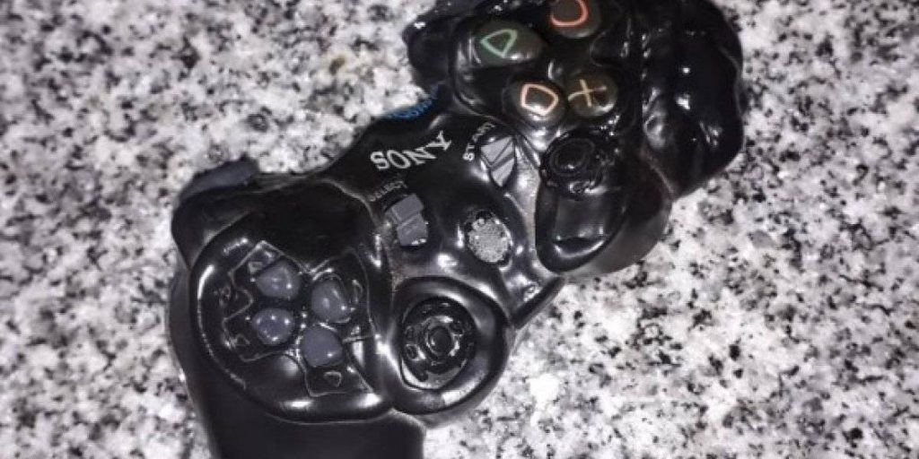 El problema es que decidió poner el control del Playstation en el horno, y luego se le olvidó que estaba ahí, así que cuando fue a cocinar, el control terminó achicharrado y derretido.