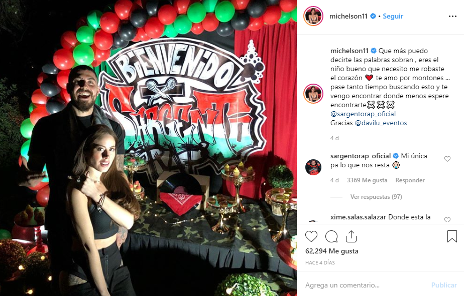 Hace unos días la chiquilla subió una imagen donde aparece con su enamorado junto al mensaje: “Qué más puedo decirte, las palabras sobran, eres el niño bueno que necesito, me robaste el corazón. Te amo por montones… pasé tanto tiempo buscando esto y te vengo encontrar donde menos esperé encontrarte”, y entre los comentarios ‘Sargento’ escribe: “Mi única pa’ lo que nos resta” junto al emoji de un bebé.