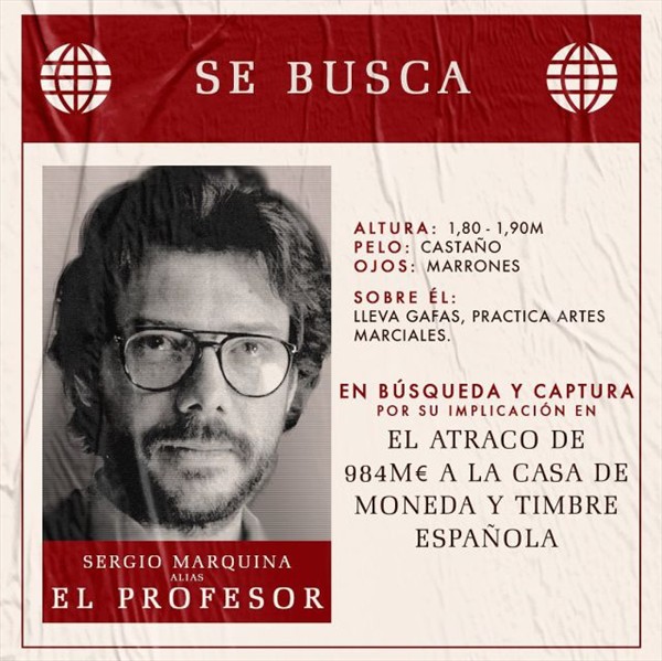 «En búsqueda y captura por su implicación en el atraco de 984 millones de Euros a La Casa de la Moneda y Timbre española», dice la publicación que acompaña la fotografía.