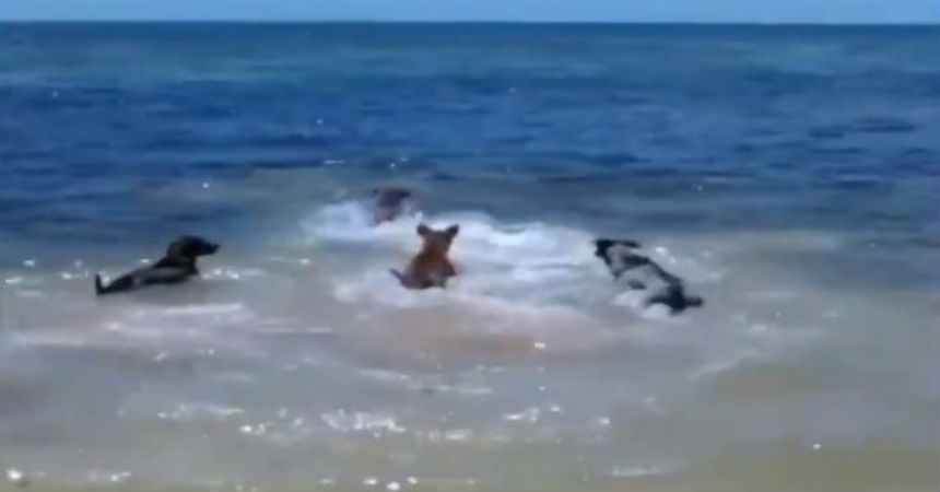 Los tiburones son animales temidos, tanto por las demás criaturas que viven en los océanos, como también por los humanos. Sin embargo, a los perros no parecen provocarles gran cosa, o al menos no a cuatro juguetones canes que fueron captados ahuyentando a un escualo.