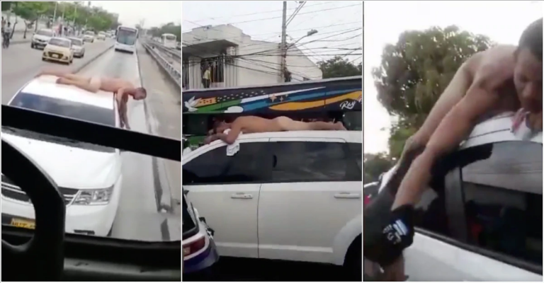 Una mujer decidió pasear a su marido desnudo en el techo de su auto como castigo por haberle sido infiel. Esto ocurrió en Barranquilla, Colombia.