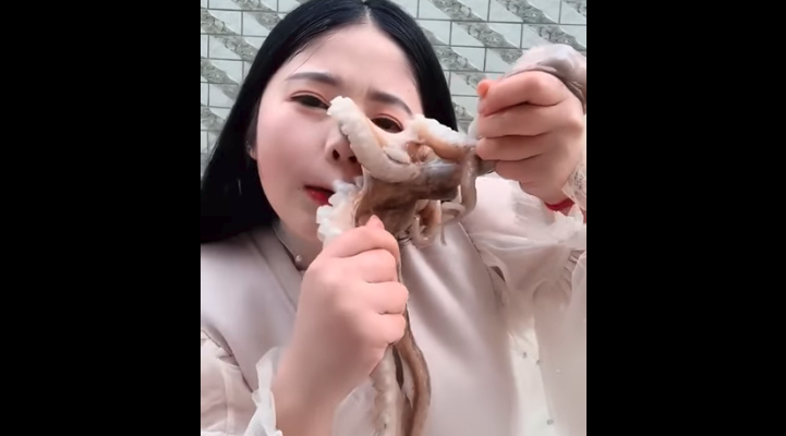 Un nuevo video se ha hecho viral y está protagonizado por una bloguera china que fue atacada por un pulpo tras intentar comérselo durante una transmisión en vivo para su plataforma personal