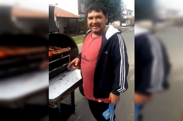 Eso es lo que muestra el nuevo video viral de las redes sociales, donde «El Papu» lleva una parrilla con las brasas calientes y el asado en su punto.
