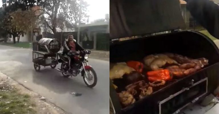 Se trata de «El Papu», un argentino que acondicionó su moto para llevar la carne asada a todas partes.