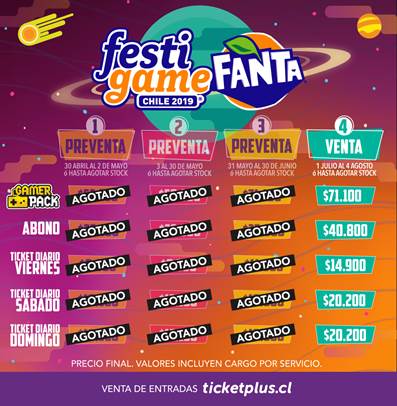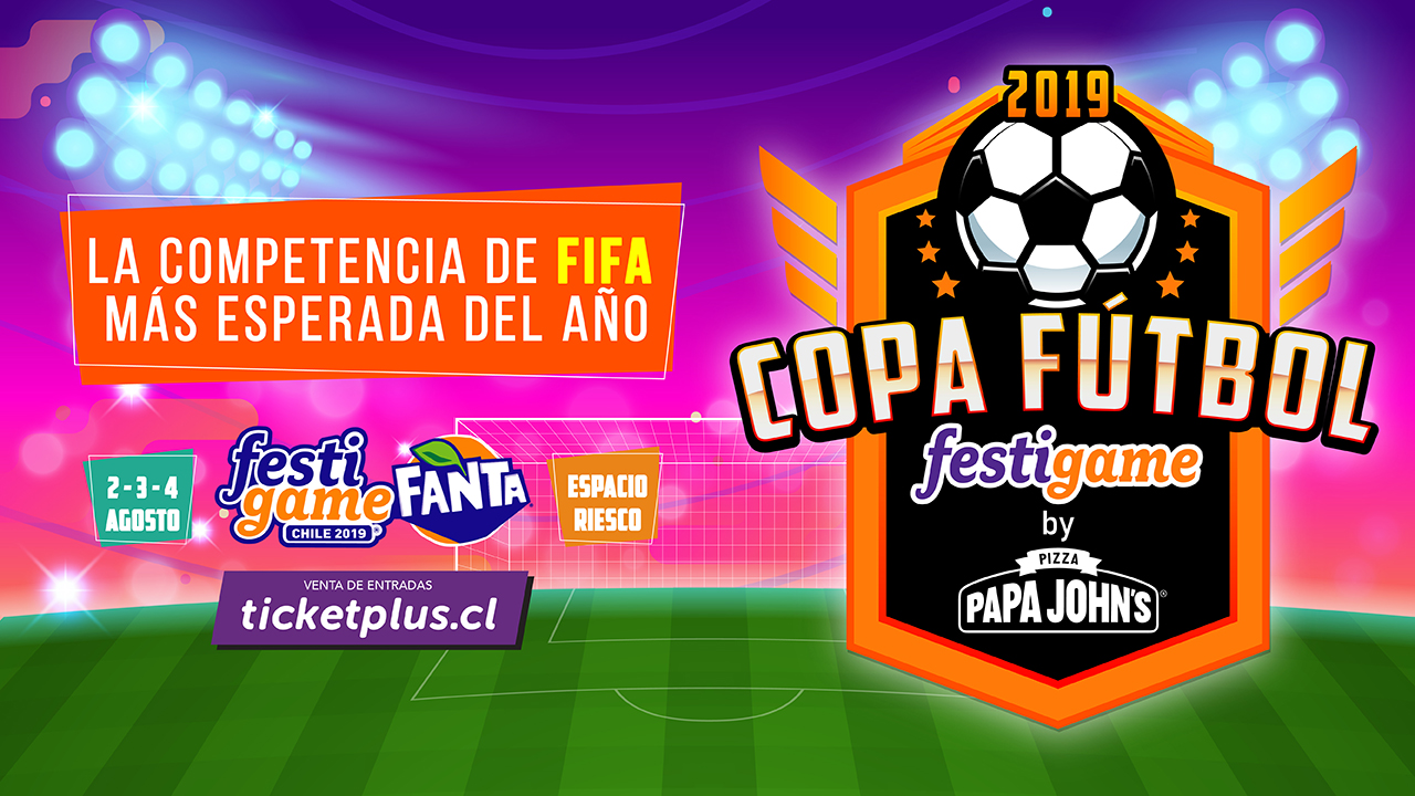 Ven a disfrutar de los talentosos exponentes de FIFA 19 en la “Copa Fútbol FestiGame 2019 by Papa John’s”, en el mejor evento de videojuegos del país, FestiGame Fanta 2019. Del 2 al 4 de agosto en Espacio Riesco. Venta de entradas a través de www.ticketplus.cl hasta agotar stock.