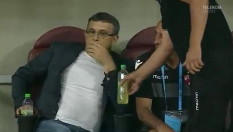 Se jugaban 26 minutos del primer tiempo del partido entre el Dínamo de Bucarest y el Universitatea Craiova, válido por la primera división del fútbol rumano, cuando la transmisión captó al DT del primer equipo visiblemente aproblemado.