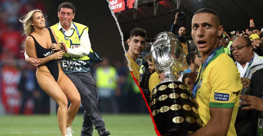 “Voy a admitir que la Copa América ganó, pero tuvimos una aventura increíble intentándolo. Volar a Brasil disfrazados, llegar a nuestros asientos y terminar en el culo de Vytalis, tras ser abordada por 20 guardias de seguridad. Estamos fuera de la cárcel y disfrutando de nuestro tiempo en Brasil”, escribió en su cuenta de Instagram junto a una fotografía en la que aparece con peluca y vestida con los colores de Brasil.