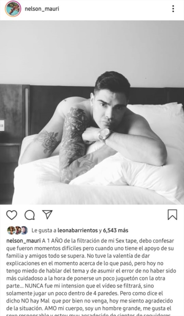 «No tuve la valentía de dar explicaciones en el momento acerca de lo que pasó, pero hoy no tengo miedo de hablar del tema y de asumir el error de no haber sido más cuidadoso a la hora de ponerse un poco juguetón con la otra parte… NUNCA fue mi intensión que el video se filtrara, sino solamente jugar un poco dentro de 4 paredes», continuó Nelson Mauri.