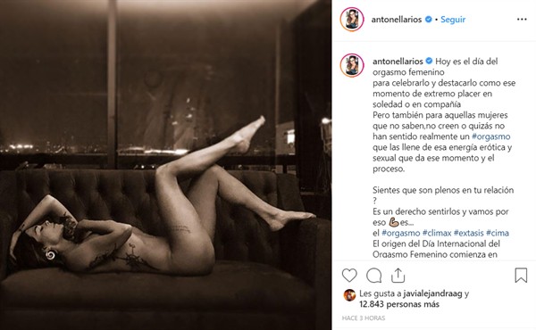 La artista acompañó la imagen con un profundo mensaje que destaca lo importante de este día: «Hoy es el día del orgasmo femenino para celebrarlo y destacarlo como ese momento de extremo placer en soledad o en compañía. Pero también para aquellas mujeres que no saben, no creen o, quizás, no han sentido realmente un #orgasmo que las llene de esa energía erótica y sexual que da ese momento y el proceso», comenzó escribiendo.