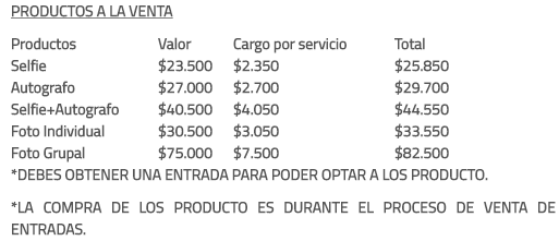 *LA COMPRA DE LOS PRODUCTOS ES DURANTE EL PROCESO DE VENTA DE ENTRADAS.