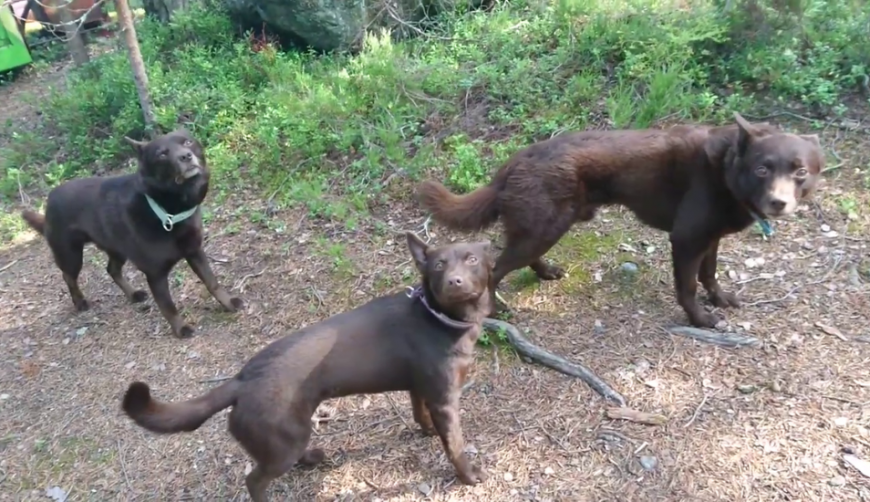 Así es, por que hace unos días comenzó a circular en redes un registro captado por un turista quien mientras recorría en medio de un bosque se encontró con tres perros que «parecían» estatuas.