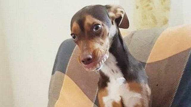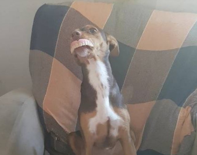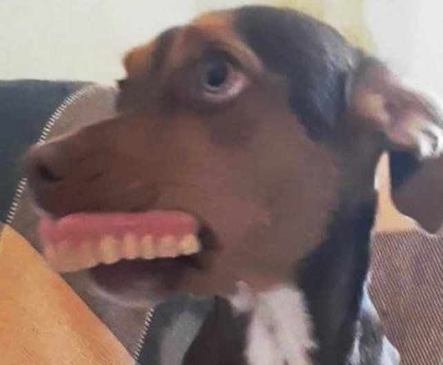Las divertidas fotos de la perrita que «robó» los dientes postizos a una weli y los usó