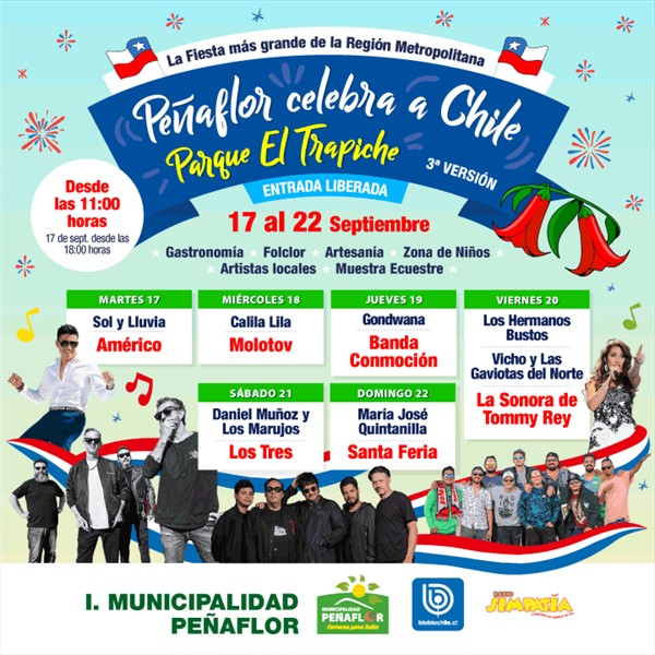 Este mega evento por tercer año consecutivo se realizará en el Parque Municipal El Trapiche, entre el 17 al 22 de septiembre (desde las 12:00 hasta las 00:00 horas) y su parrilla de invitados es de primer nivel nacionales e internacionales.
