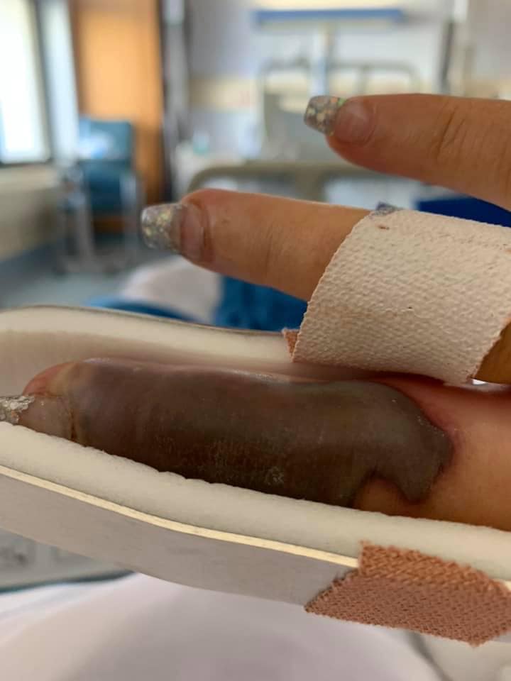 Resulta que esta chiquilla al llegar a su casa, notó que tenía un fuerte dolor en un dedo el cual ignoró, sin embargo, al día siguiente, este empeoró. Como la molestia continuaba decidió asistir a un hospital donde le recetaron antibióticos, los cuáles no le hicieron efecto y a a la mañana siguiente el dedo estaba peor.