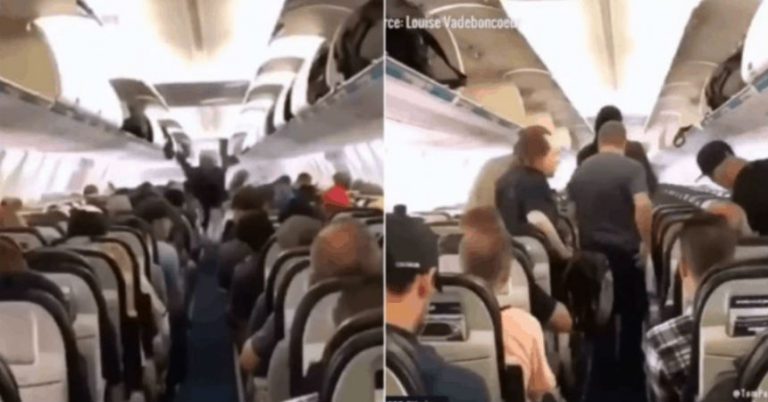 En el video se puede ver como en el vuelo de WestJet las personas se van levantando de fila por fila, agarrando su equipaje y descendiendo del avión. Y claro, la única explicación es que son canadienses.