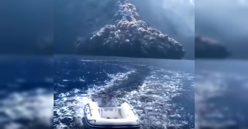 Esta es la segunda erupción en menos de dos meses y ha dejado una imagen estremecedora que ha dado la vuelta al mundo. Se trata de un video grabado desde un barco de turistas que huye a toda máquina para no ser alcanzado por la lava y cenizas.