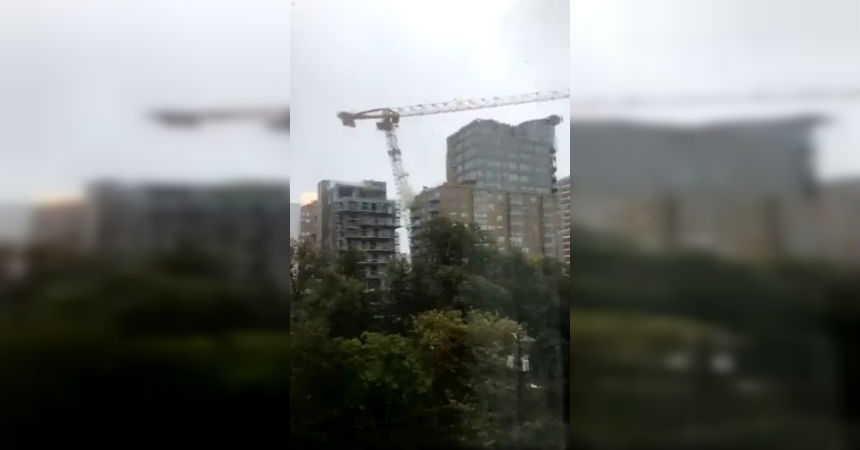 Footage shows a crane collapsing onto buildings in Halifax, Nova Scotia as Dorian now a hurricane-force-Post tropical cyclone approached the Canadian province. https://t.co/B6Usylbfus pic.twitter.com/HtsJWLPepj