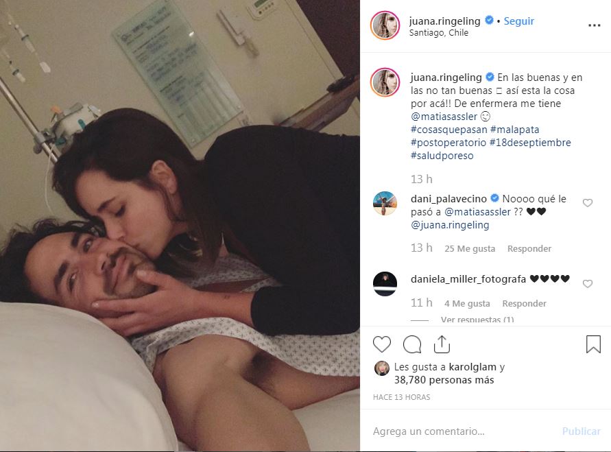 Tras esto fue trasladado hasta la clínica donde tuvo que ser operado. Juanita dio a conocer la noticia a través de redes sociales.«En las buenas y en las no tan buenas. Así está la cosa por acá!! De enfermera me tiene @matiasassler», escribió ella en Instagram.
