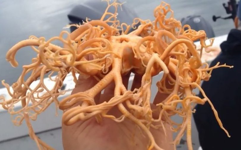 Esa especie de color anaranjado llamó la atención por su gran parecido entre una estrella de mar y un pulpo con exceso de tentáculos pero sobre todo por su particular movimiento.