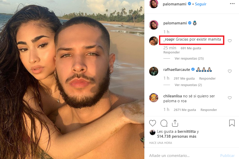 En poco tiempo la publicación se llenó de comentarios y reacciones ya que no se sabía si estaban comprometidos o era otra cosa. Además, Roa le comentó: «Gracias por existir mamita».