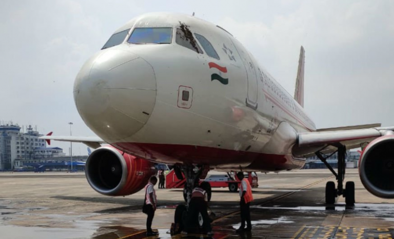 Un insólito episodio se vivió en un aeropuerto de India, donde un enjambre de abejas se posó sobre una de las ventanas de la parte delantera de un avión de la aerolínea Air India.
