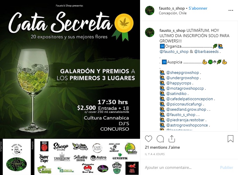 La fiscal Carla Hernández explicó que “un grupo de sujetos organiza lo que ellos denominan una cata de distintas cepas o razas de cannabis sativa (…) Los consumidores habían comprado una entrada. Se logra la detención de tres sujetos, organizadores de esta actividad, se incauta droga en su poder, cannabis y cocaína. Se detiene a un sujeto comercializando droga al exterior y se detiene a los dos administradores del local al prestarse para que una actividad de esta naturaleza se realice al interior del recinto”.