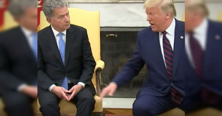 Así quedó de manifiesto en una reunión con el presidente de Finlandia, Sauli Niinisto, a quien frente a la prensa en el Salón Oval le tocó la pierna con su mano derecha.