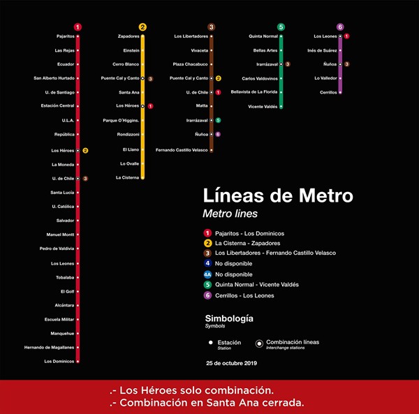 Metro de Santiago dio a conocer las características y condiciones en las que operará el servicio durante este sábado 26 de octubre.