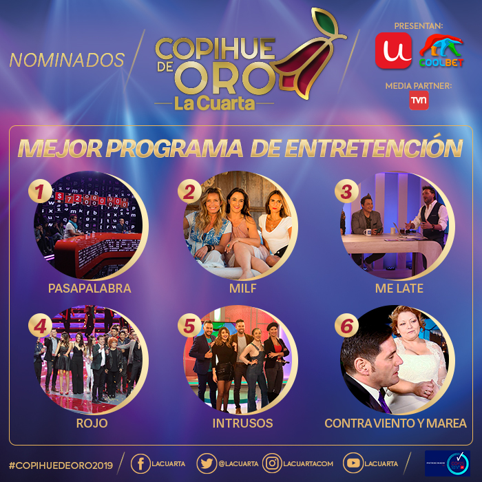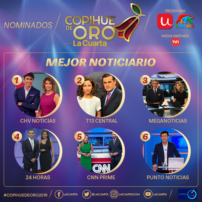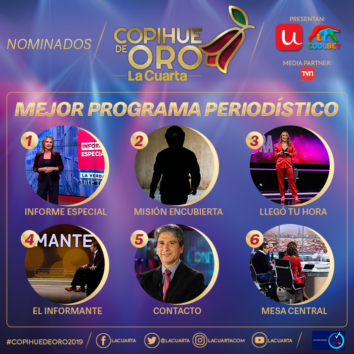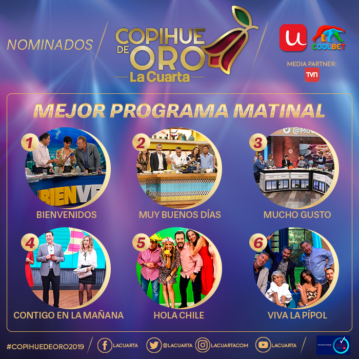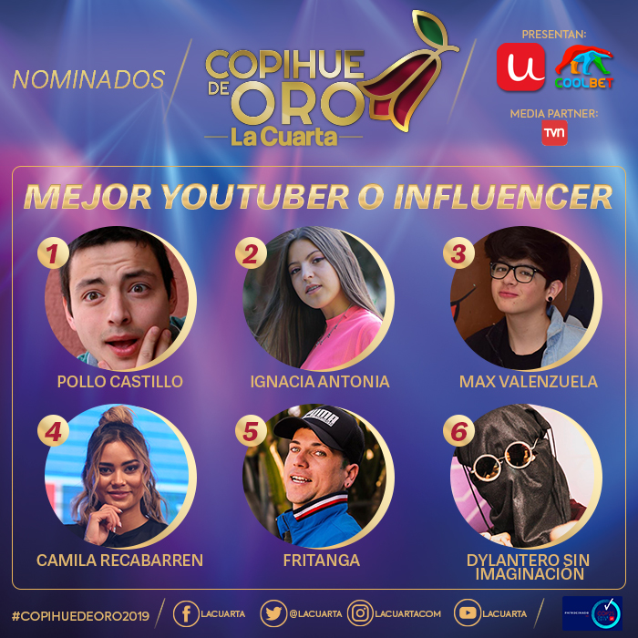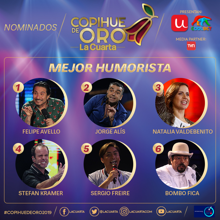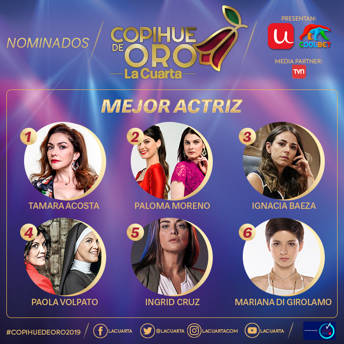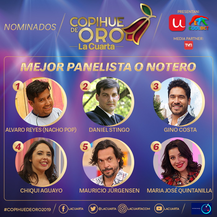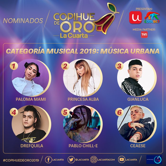 Revisa a continuación los nominados a las diferentes categorías que se premiarán este año. Si quieres asistir al Copihue de Oro 2019 puedes comprar tus boletos en ticketplus.