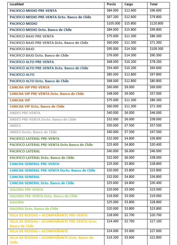 También habrá una preventa exclusiva para clientes del Banco de Chile desde el mediodía del martes 22 de octubre.