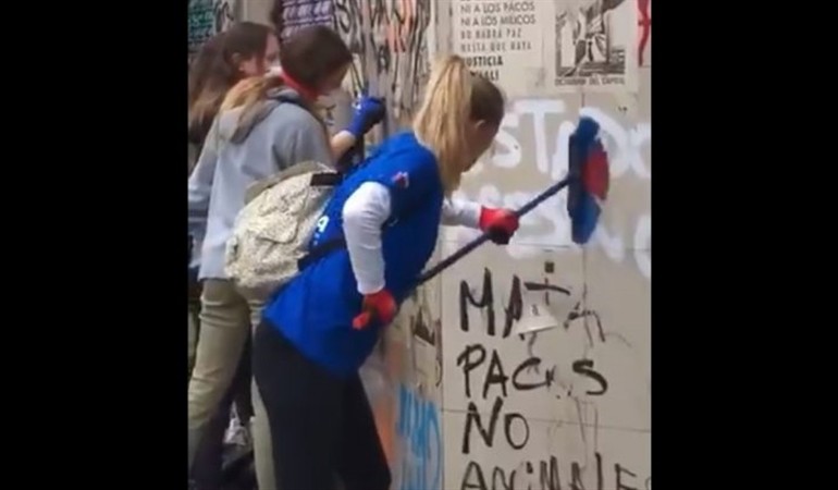 Hace un par de días una chiquilla se volvió viral por su forma de limpiar las paredes con rayados tras las masivas manifestaciones registradas en Santiago.
