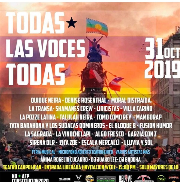El festival «Todas Las Voces» se realizará en el marco de la masivas manifestaciones en Chile en contra del gobierno.